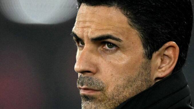 Arsenal’s Spanish manager Mikel Arteta looks on before the English FA Cup quarter final football match between Southampton and Arsenal at St Mary’s Stadium in Southampton, southern England on April 4, 2026. (Photo by Glyn KIRK / AFP) / RESTRICTED TO EDITORIAL USE. No use with unauthorized audio, video, data, fixture lists, club/league logos or ‘live’ services. Online in-match use limited to 120 images. An additional 40 images may be used in extra time. No video emulation. Social media in-match use limited to 120 images. An additional 40 images may be used in extra time. No use in betting publications, games or single club/league/player publications. /