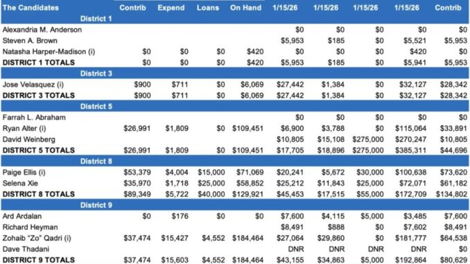 She initially appointed a treasurer January 13th to run for mayor, then realized that job’s not on the ballot in 2026, and re-filed January 15th to run for District 5. She had raised no funds as of that day.