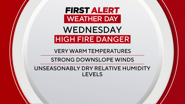 Colorado has another day of fire and ice threats from the mountains into the plains. Wednesday is a First Alert Weather Day as the triple threat of unseasonably warm temperatures, strong downslope winds and extremely low humidity levels appear once again across the region.