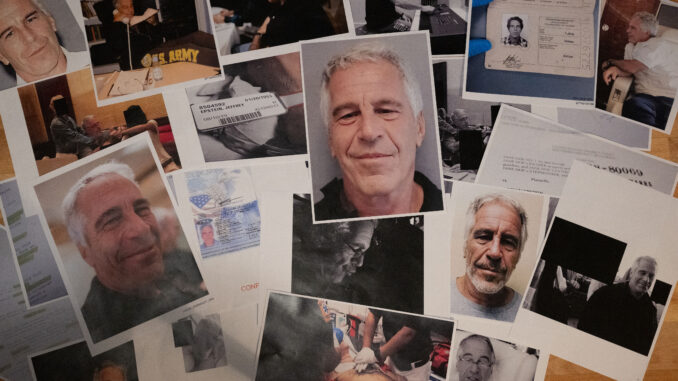 This photograph taken in Le-Perreux-sur-Marne, on February 9, 2026 shows pictures provided by the US Department of Justice on January 30, 2026 as part of the Jeffrey Epstein files.