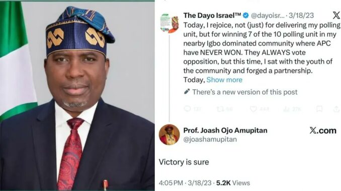 The denial comes after images surfaced online showing a post from March 2023 by an account bearing the handle @joashamupitan, which appeared to celebrate the victory of the All Progressives Congress (APC) in a community.