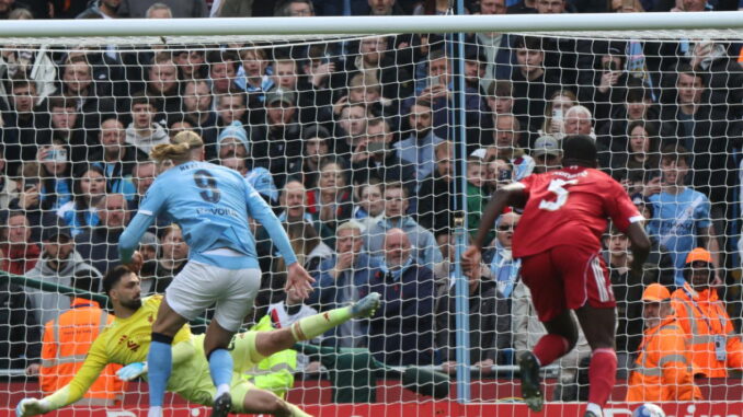 Rayan Cherki found Semenyo’s run and he lofted a pin-point cross towards Haaland, who made a perfectly-timed run in front of Ibrahima Konate to glance a superb header past Giorgi Mamardashvili.