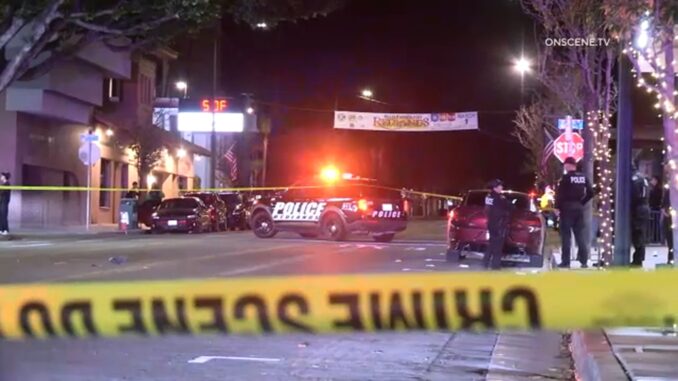 REDLANDS, Calif. (KABC) — Gunfire erupted after a person involved in a fight got into a car and plowed into a crowd of people standing on the street outside a Redlands bar, authorities said.