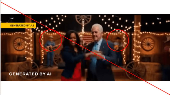 The video published by Paxton in his social media accounts includes a disclaimer about the AI generated content at the end of the video. But there are also clear signs that it is AI-generated: the participants’ unnatural movements, the faceless humans in the background of the video, and the blurred background. It clearly looks like animation.