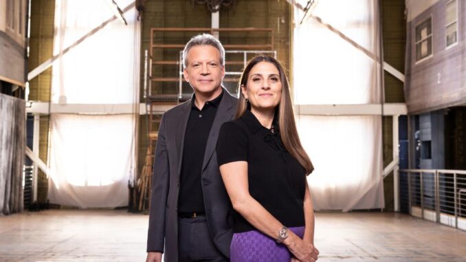 Pam Abdy and Mike De Luca, co-chairs and chief executive officers of the Warner Bros. Motion Picture Group, are posing for a photo in the Scenic Loft on the studio’s historic lot. You may remember this as the backdrop from a scene in “The Studio,” where the head of a fictional Hollywood institution, played by Seth Rogen, learns he’s finally landed his dream job. That is, if he can get a four-quadrant movie based on a popular drink mix off the ground. The duo thinks the Emmy-winning series is a funny “caricature of the industry” — except for, well, one aspect: getting that Kool-Aid movie on track.