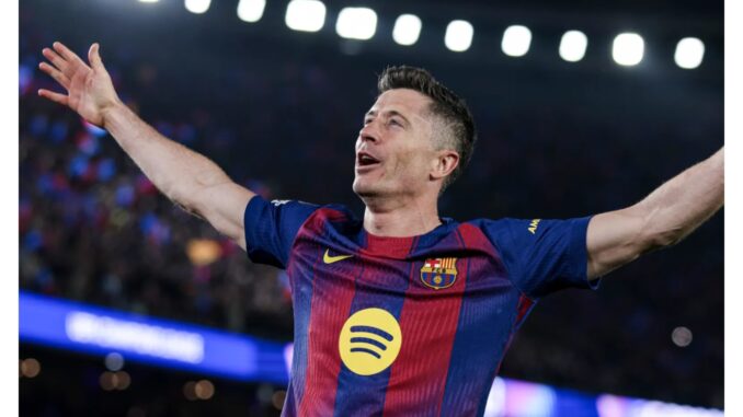 Barcelona striker, Robert Lewandowski, on Saturday equalled the club’s former forward Hristo Stoichkov’s record after scoring a goal in the Blaugrana 2-1 win against Atletico Madrid.
