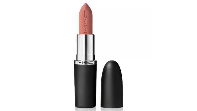 MAC Cosmetics lipstick in a nude color.