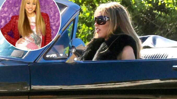 Miley Cyrus sent fans wild after being spotted cruising through Malibu sporting her iconic blonde “Hannah Montana” wig.