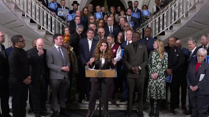 Jewish, Catholic and Muslim faith leaders all spoke at a press conference at City Hall about the importance of the bills to combat hate.