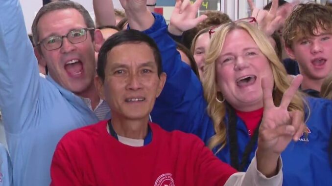 Though he doesn’t speak much English, Mr. Le didn’t need words to express his gratitude as he hugged the kids through cheers and laughter.