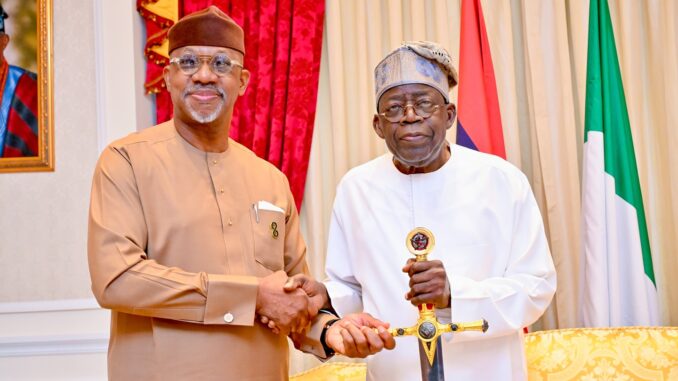 He explained the symbolic significance of the sword: “I presented him with a ceremonial sword in his esteemed capacity as the Jagaban (leader of warriors/conquerors), urging him to continue his war on crime and criminality, anti-corruption, and particularly as he embarks on the second-term re-election.”