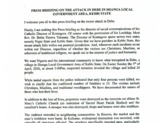 The Catholic Diocese of Kontagora has said no fewer than 24 people were killed in the recent attack on Debe village in Shanga Local […]