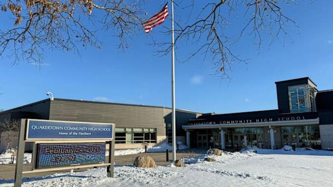 The group had staged a walkout from Quakertown Community High School, leaving the building chanting and carrying handmade signs protesting immigration enforcement policies.