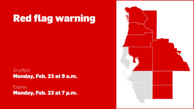 The National Weather Service released a red flag warning at 11:38 p.m. on Sunday valid for Monday between 9 a.m. and 7 p.m. The warning is for Coastal Levy and Inland Levy as well as Polk, Citrus,…