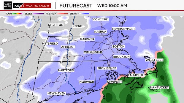 It will be snowing in Worcester County and western Massachusetts by 7 a.m. and in eastern Mass. by 8-9 a.m.