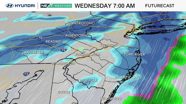 Plan on some morning snow showers around the Philadelphia region for the morning drive Wednesday. Impacts should be relatively minor, but be careful out on the roads.