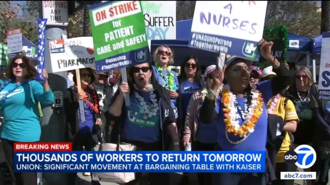 The union also called off all picketing activity on Monday as the union and Kaiser “finalize return-to-work agreements.”