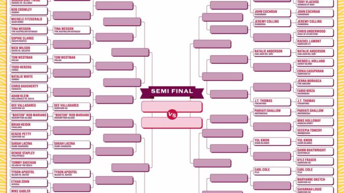 Because common math tells us that 49 does not equal 64, some winners have received first round byes from Entertainment Weekly‘s panel of Survivor experts and already advanced to the second round. Also, the two-time winners Sandra Diaz-Twine and Tony Vlachos are guaranteed on making it to the second round since Pearl Islands Sandra will be facing off against Heroes vs. Villains Sandra in round one, and Cagayan Tony will take on Winners at War Tony. The rest is all up to you!